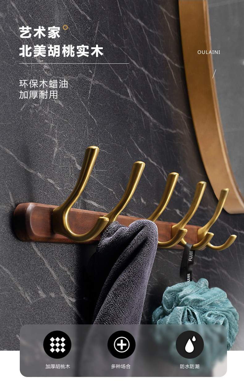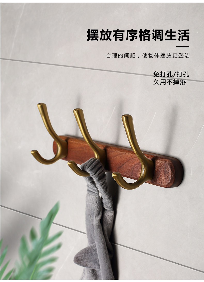 Новый китайский стиль висящий крюк с твердым деревом въезжая дверной крыльцо Крюк Крюк Одежда, связанная с стеной стены на стене крючка дома