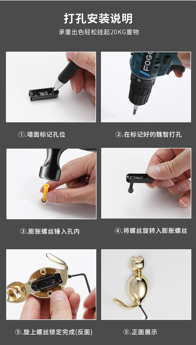 Yijia вошла в дом дверь висящей стену для одежды -Хунг стена творческий кот крюк крючок крючок для ванную комнату для ванную комнату