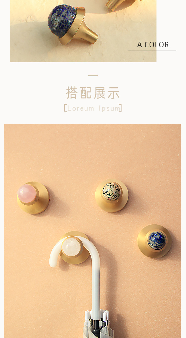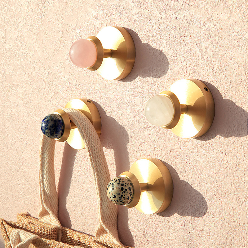 Латунный крючок для входа, скандинавский кристалл, натуральный камень, простой настенный настенный крючок, одиночный крючок, латунный декоративный крючок для пальто