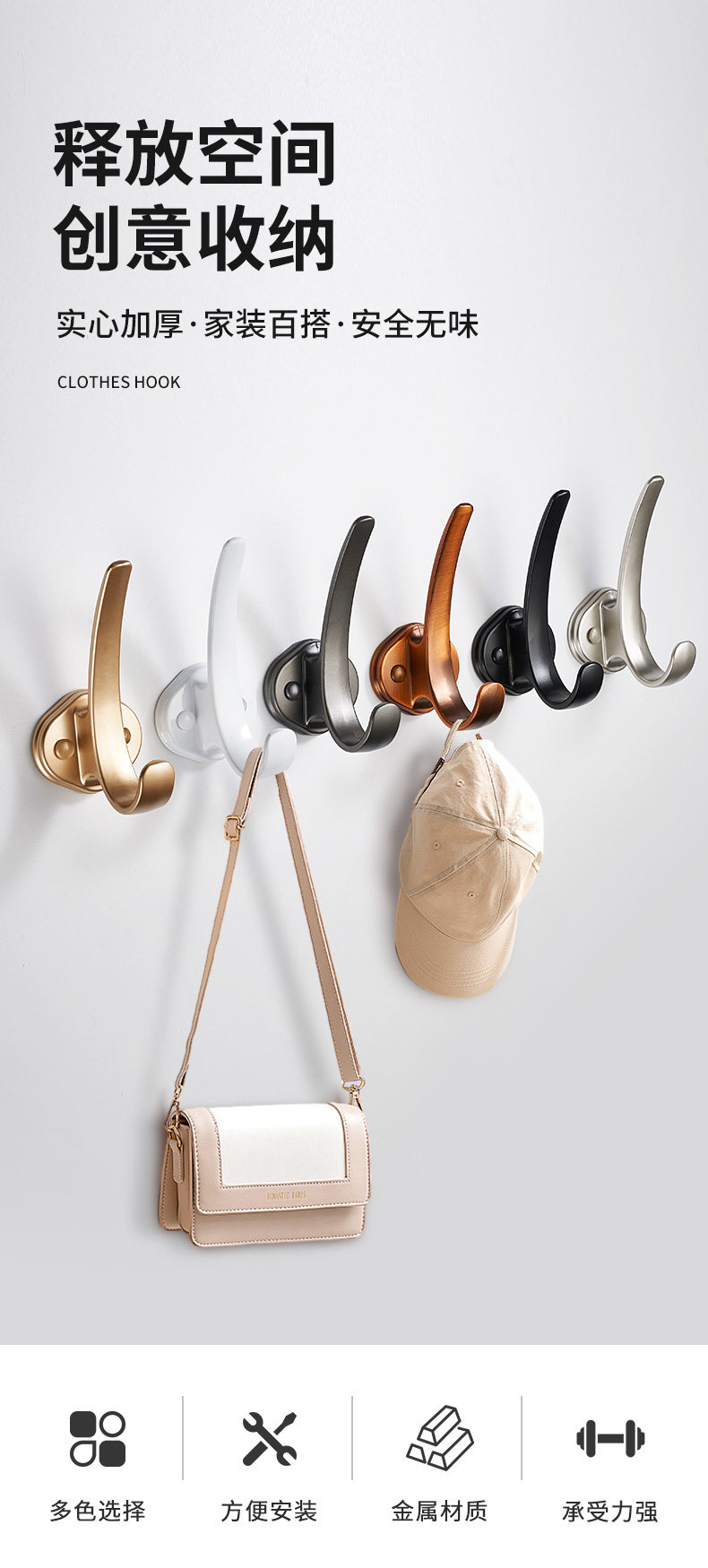 КУРСКИЙ Крюк Стена с фиксированной стеной -стены, шкуры для одежды, туфли для подвесной крючок крюк в дверной крыльцу, один крючок