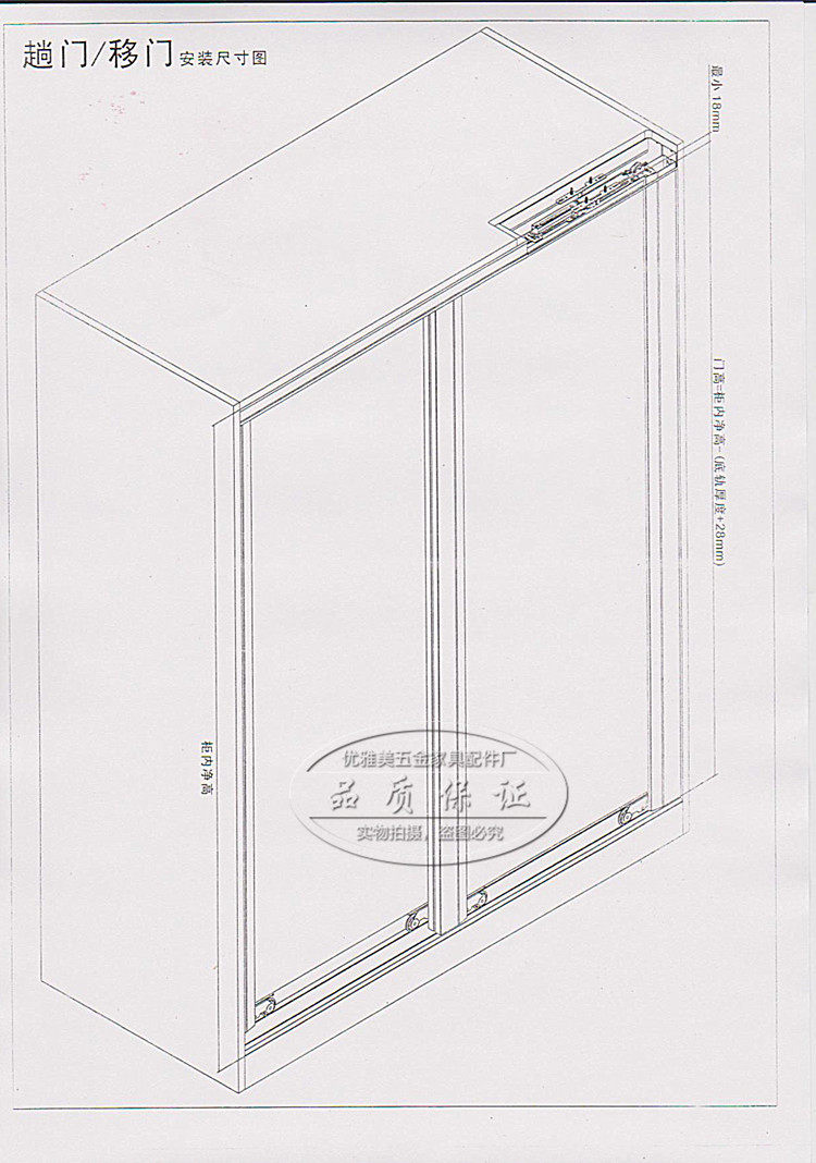 Требования: Ширина односторонней канавки с алюминиевым слотом над дверью составляет 35 мм/37,5 мм/39 ммПространство установки верхней плохого рамы алюминия требует высоты более 25 мм