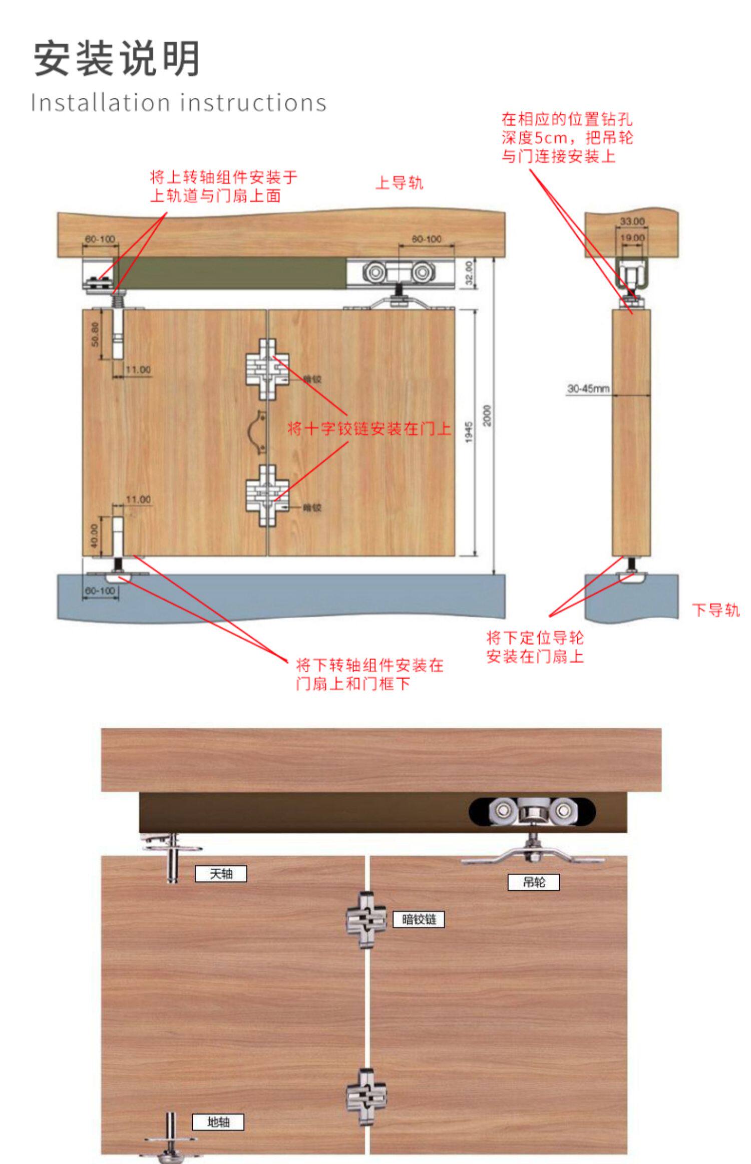 Тихая складная дверная дверь висят колесо деревянная дверь стеклянная дверь движущаяся шкив с висячими роликами Pendulton Rail Trail Trail Splting Door Accessories