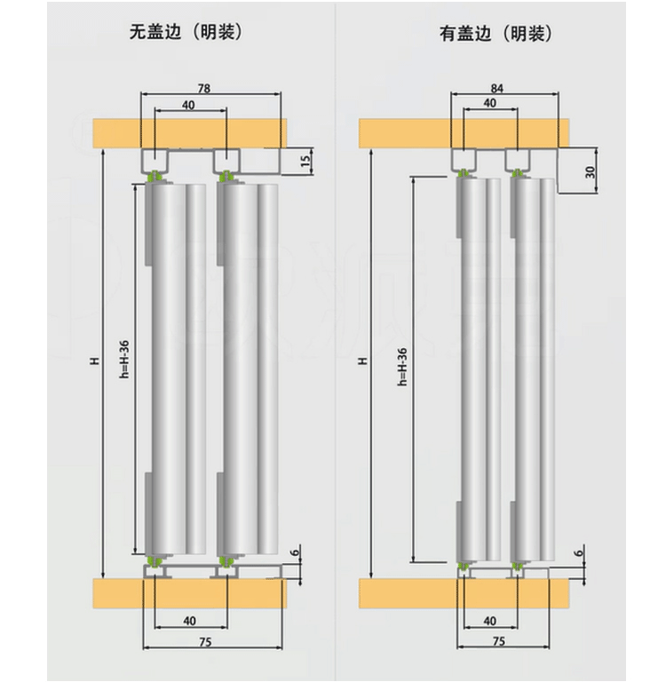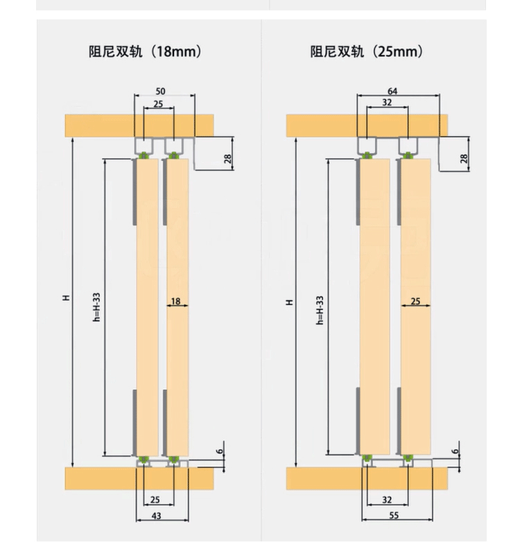 - 25 -миллиметровая подвесная дверь (4 раунда +2 демпфирование +1 Установочный пакет)