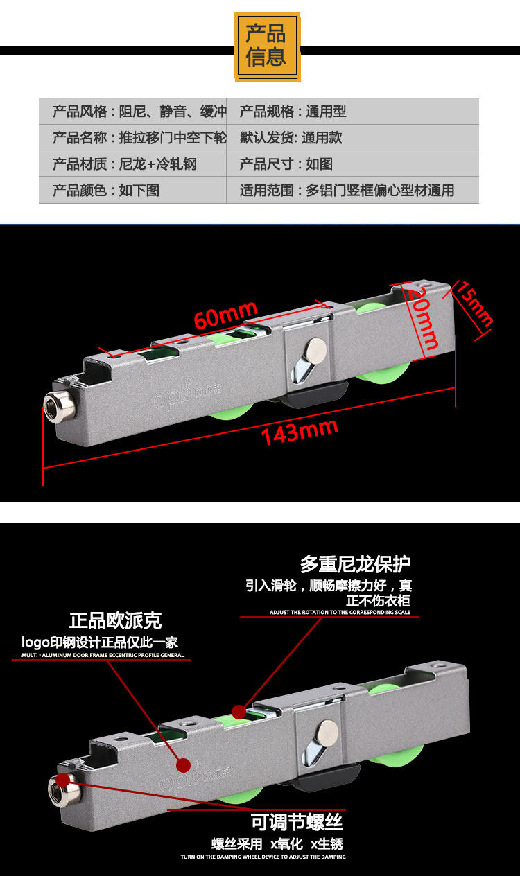 Opatucks переместили дверные шкивы Следующее колесо кухонная кухонная дверная шкив балкон Дверной колес