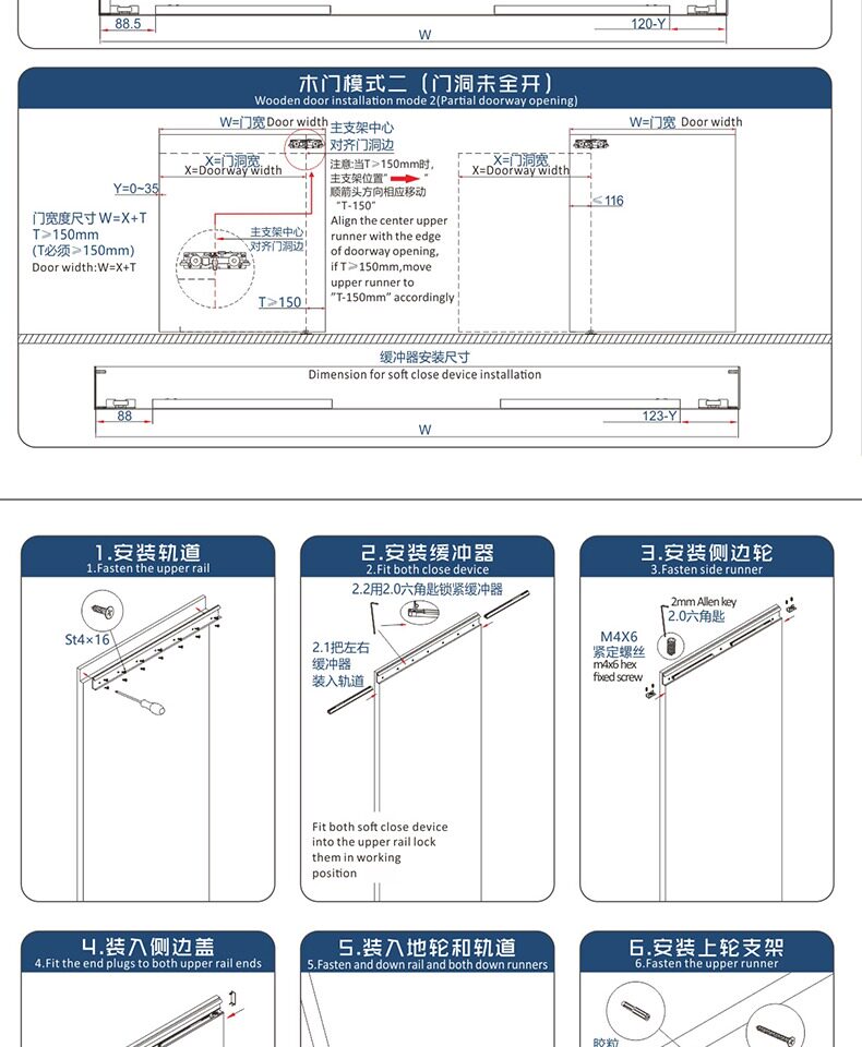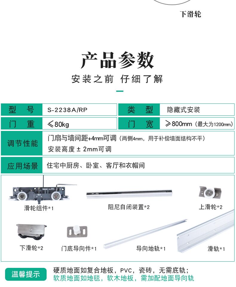 Невидимый толкающий дверь призрака, звонящий Делома, связывающий ворота кухня, перемещенная дверь твердый деревянный рельсовые аксессуары без орбиты