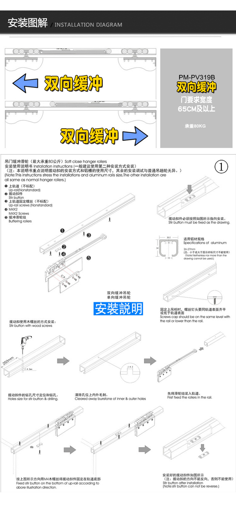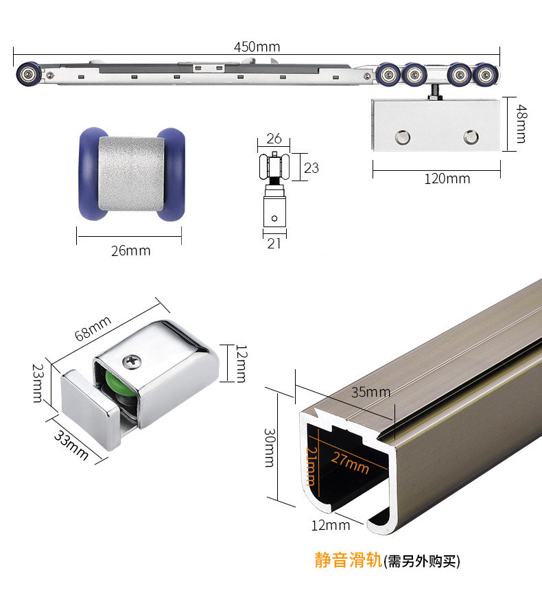 Стеклянные раздвижные дверные шкивы кухня без закаленной стеклянной дверь Дверь Дверь двухэффективное отверстие для подвески на орбите