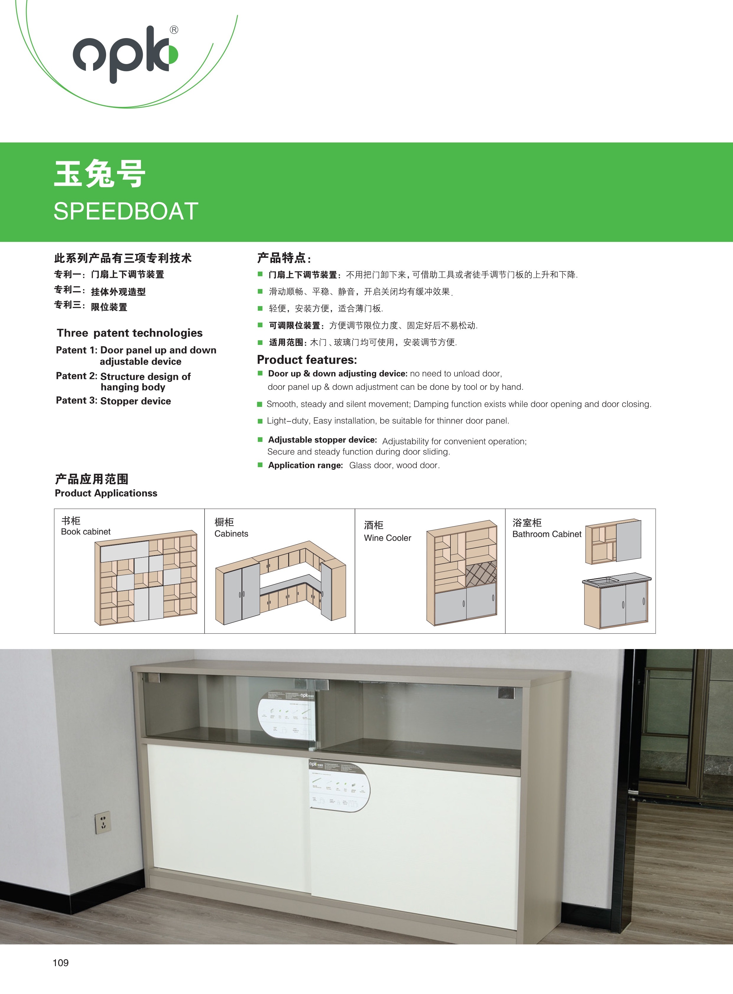 - Yutu № 2 Стеклянная дверь одно -деревенское двойное демпфирование, вес двери ≤15 кг, ширина двери ≥560 мм