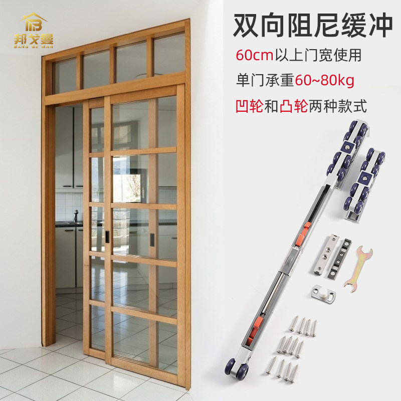 Кухонный толчок деревянные дверные дверные рельсы два буферных дверных перегородка -Дверная дверная дверная шкив с полным набором прокат