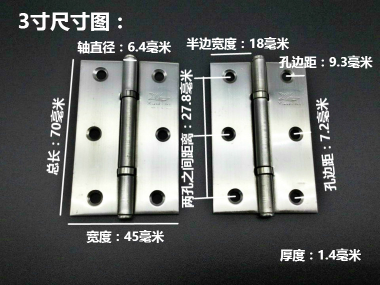 吉祥龙 Золотой шарнир из нержавеющей стали, 2 дюймов, 2.5 дюймов, 3 дюймов