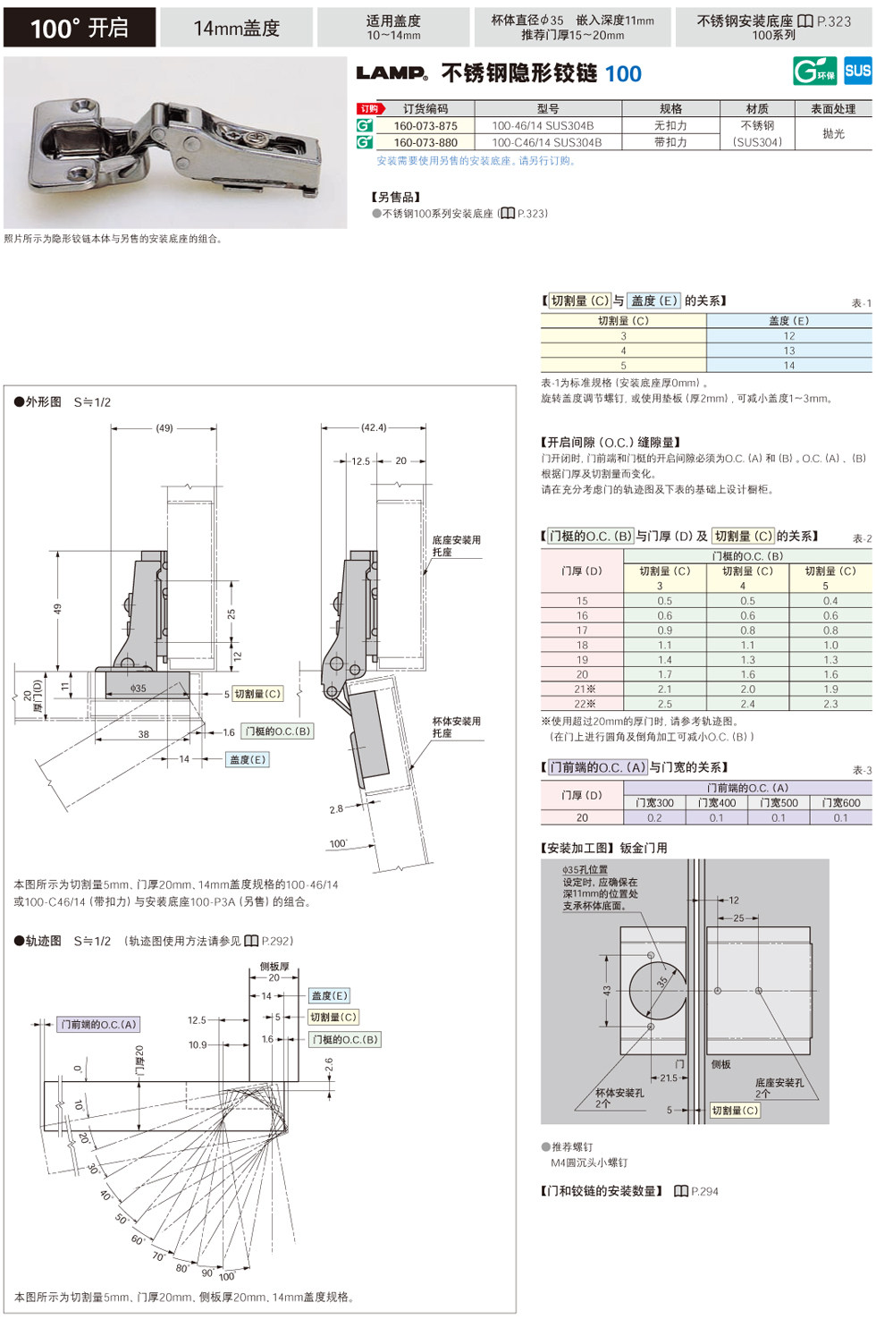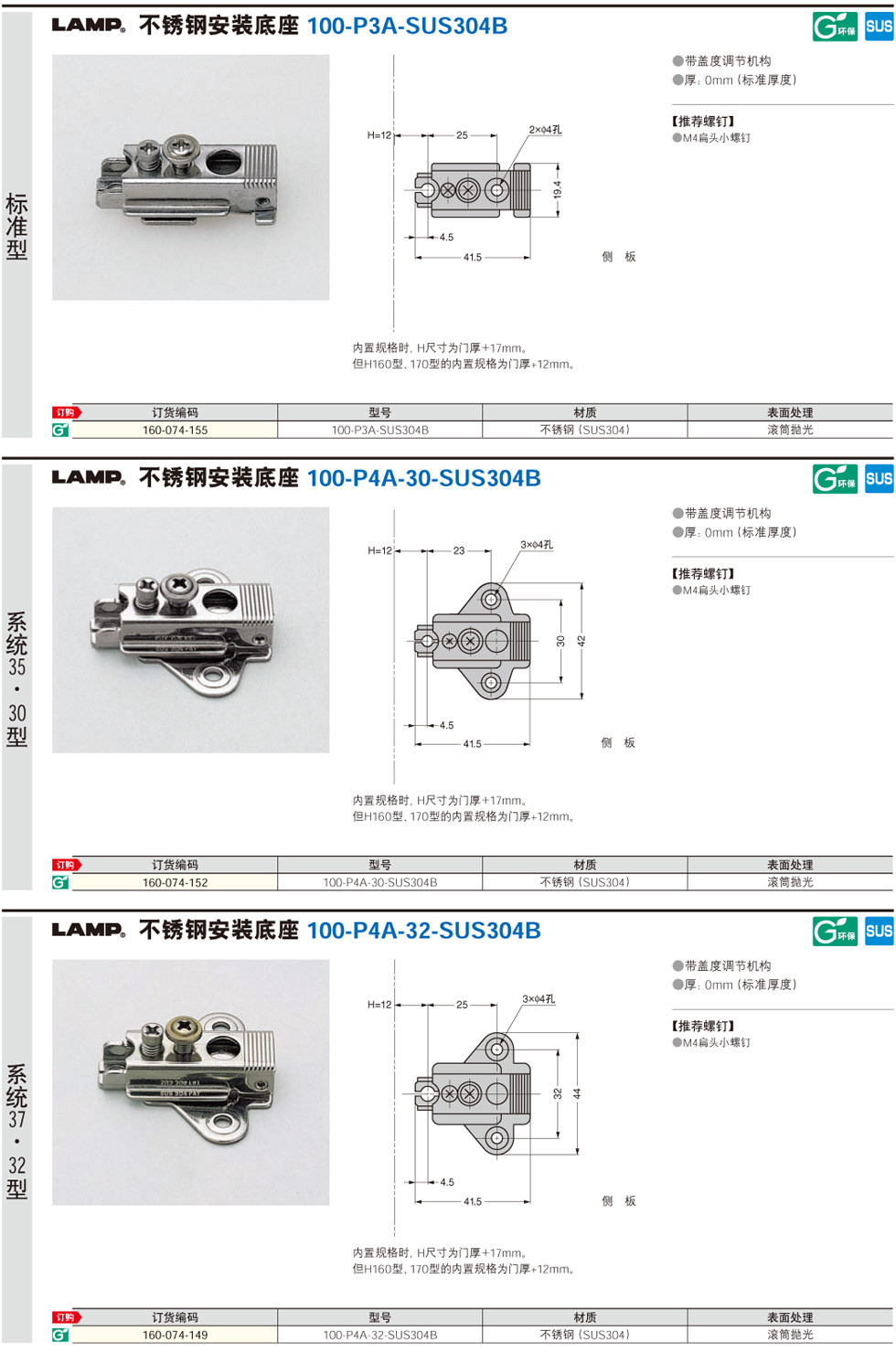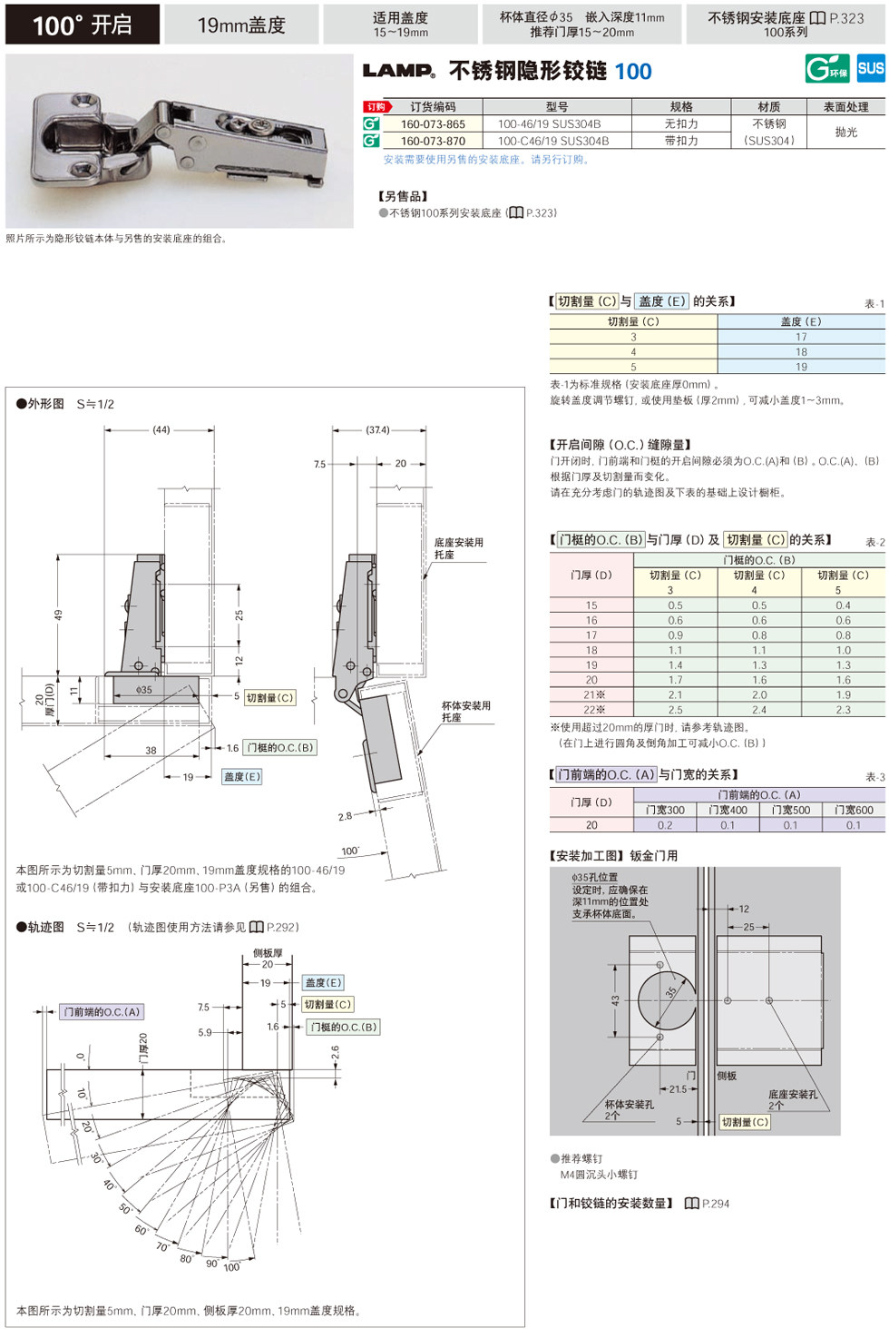 Segatsune Sugatsune Lamp Lamp Lamp No Вышивая стальная уляка Hingle 100 Series и 100 установка базы