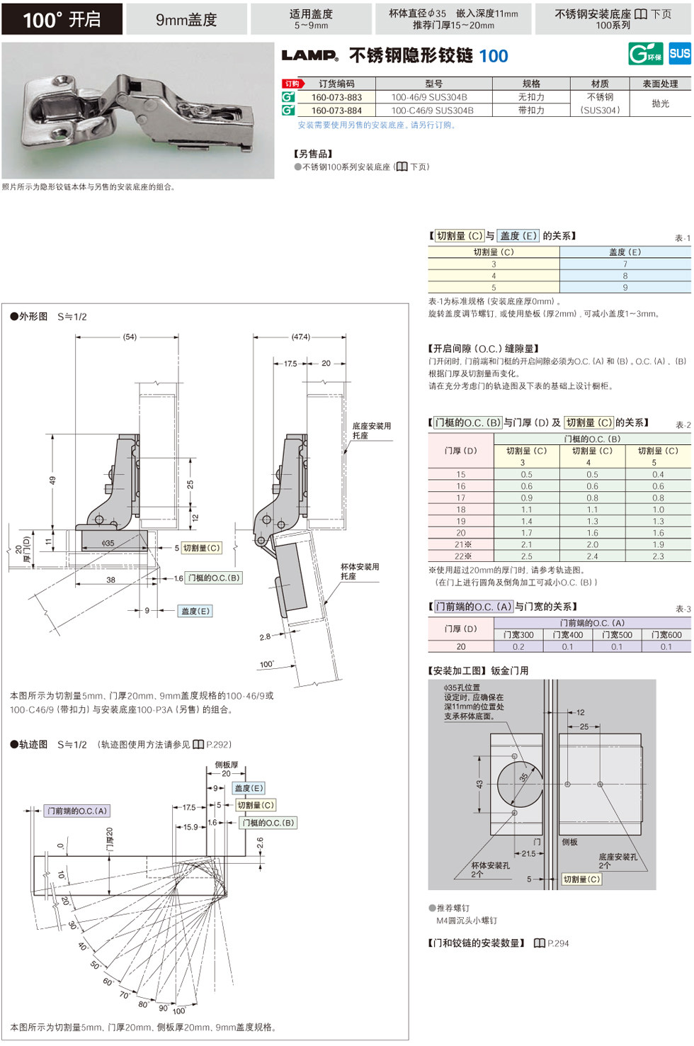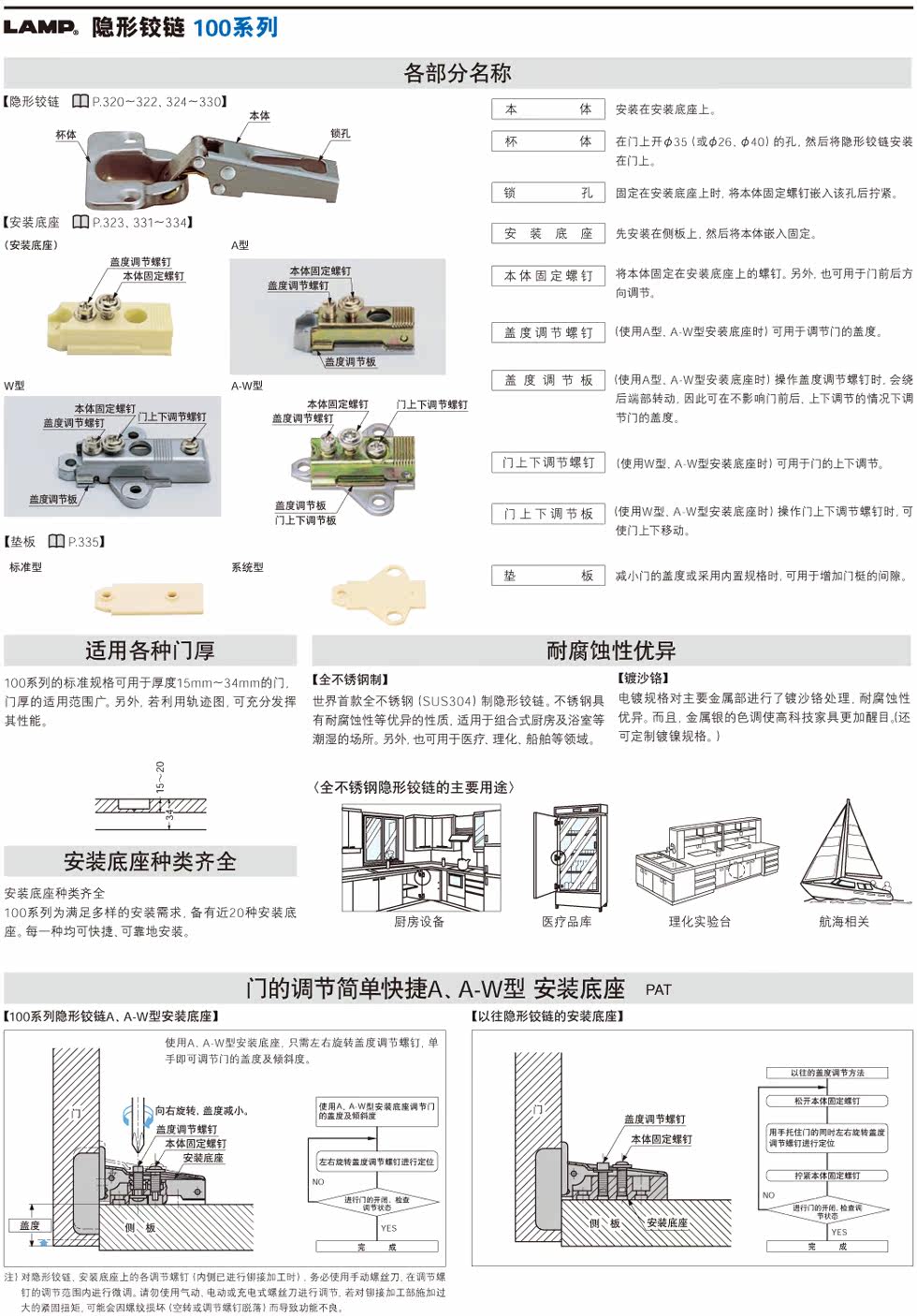 世嘉智尼 SUGATSUNE LAMP невидимая петля из нержавеющей стали серии 100 и монтажное основание 100
