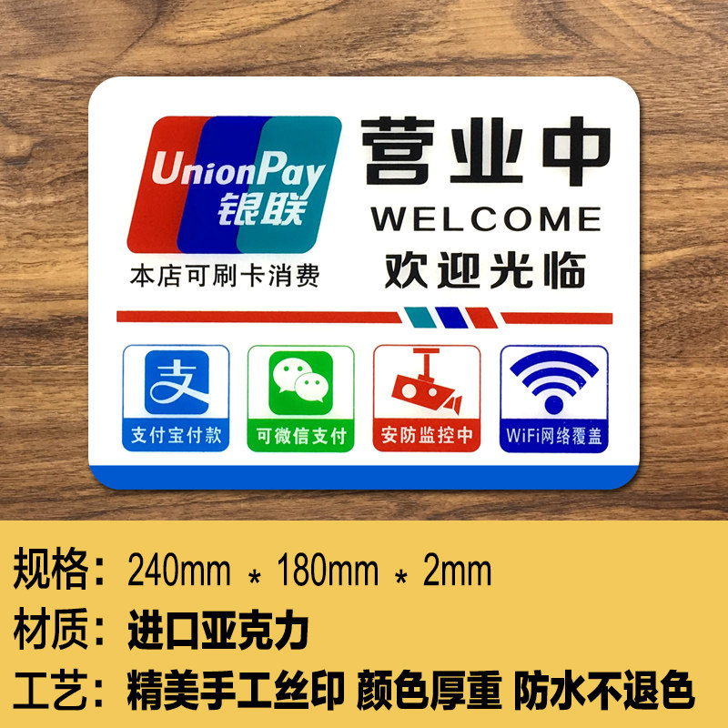 Yayli Business in the Business приветствуется в дверь веб -сайта Wi -Fi UnionPay логотип Alipay Logo Sign
