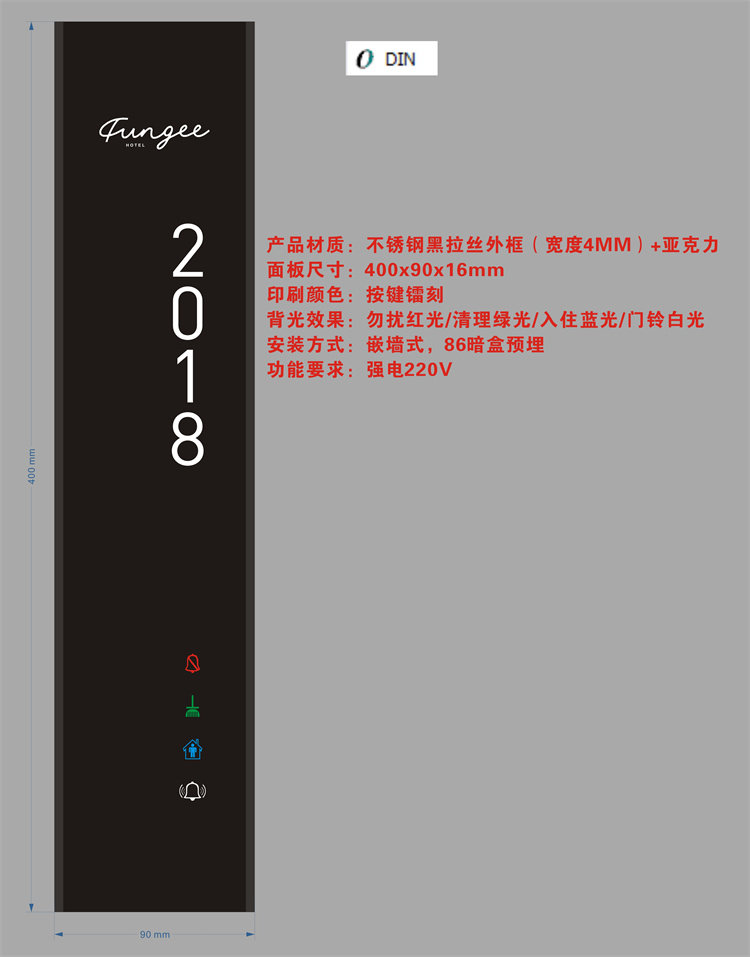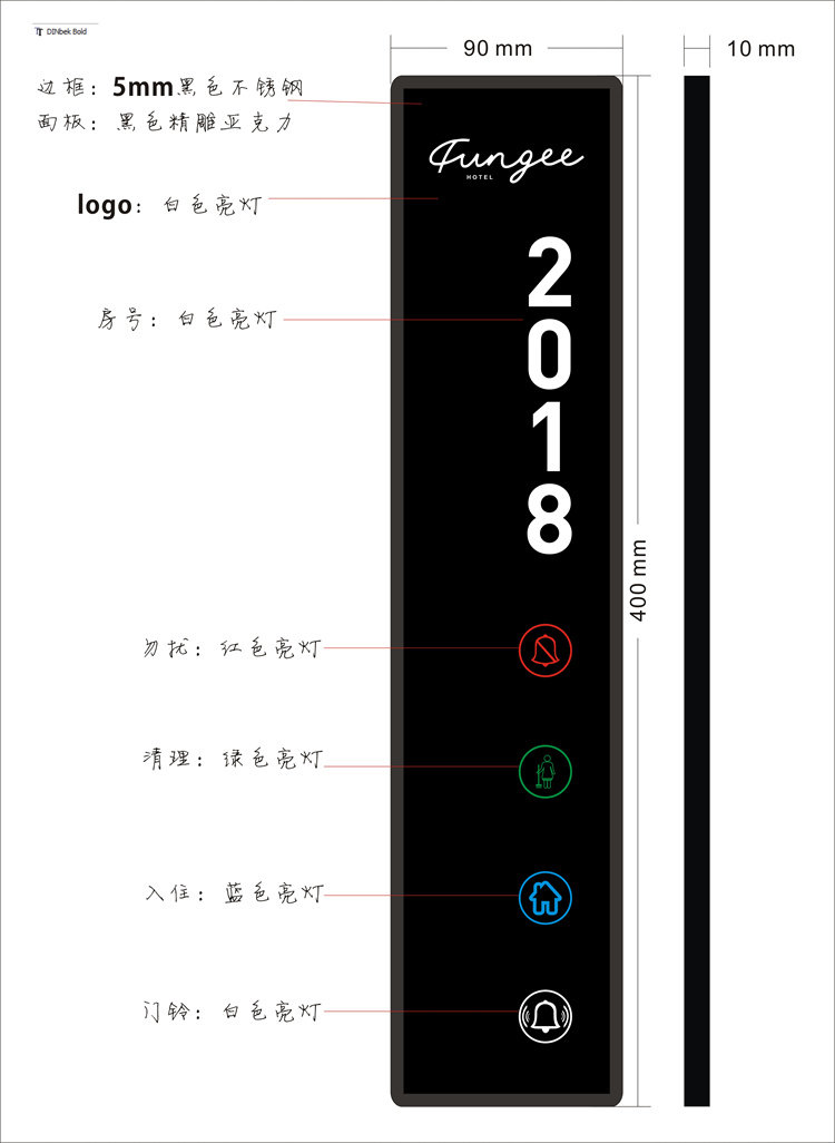 ■ Показать дверные звонки, специально предназначенные для домохозяйств отеля, тщательно разработанных для отеля. 1 «Не беспокоить» и 1 «Пожалуйста, очистите».