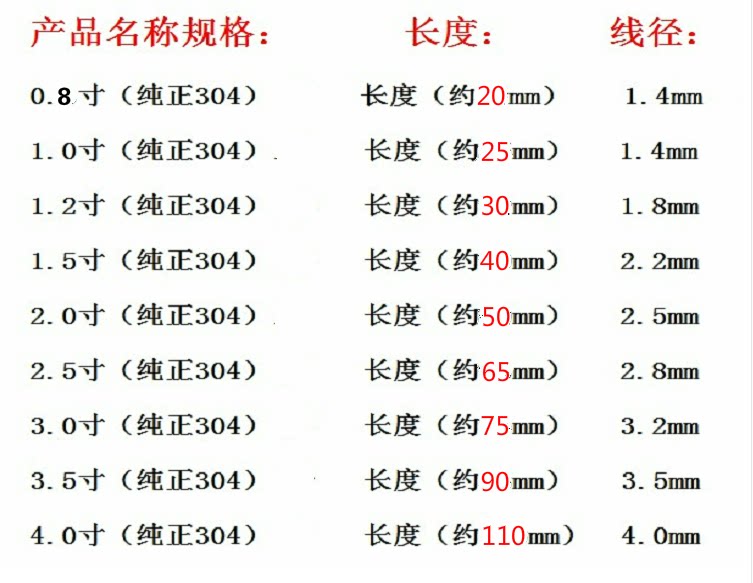| Цвет: | 8 баллов (40), 1,0 дюйма (30), 1,2 дюйма (30), 1,5 дюйма (20 штук), 2 дюйма (20), 2,5 дюйма (20 штук), 3 дюйма (10), 3,5 дюйма (10 штук), 4,0 дюйма (10 штук) |