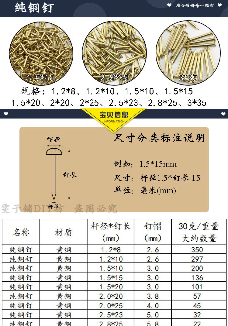 [30 грамм] Бесплатная доставка китайские антикварные медные гвозди вокруг головы маленькая барабана декоративная мебель Союз Союз Медные ногтя Многоразмер