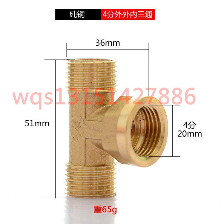 4-точечный утолщенный медный тройник для колена провода, три внешних провода, три внутренних провода, внутренний и внешний провода, медные соединения, трубные фитинги и муфты, прямые