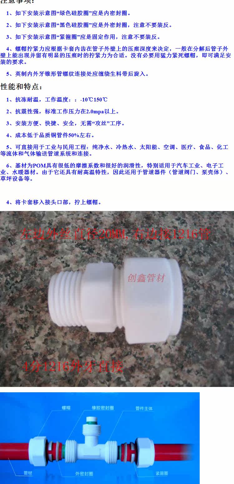 1216 Внешние зубы Прямые детали труб POM Солнечные верхние и нижние водопроводы Алюминиевые пластиковые трубы Pex
