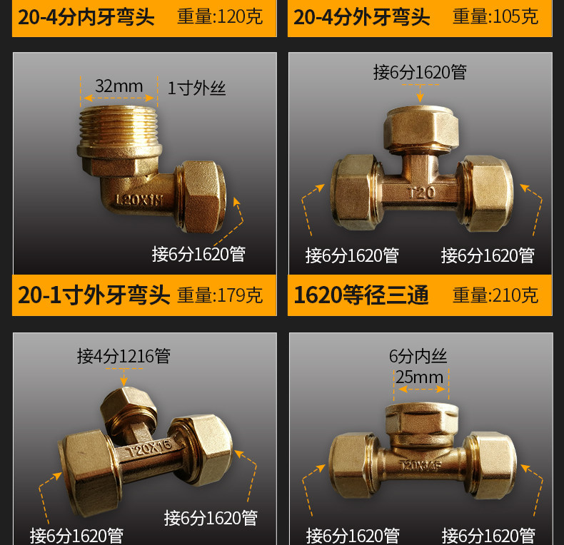 Аксессуары для соединения алюминиево-пластиковых труб 1620, 6 точек, медные аксессуары для соединения солнечных радиаторов, трехходовой угловой шаровой кран