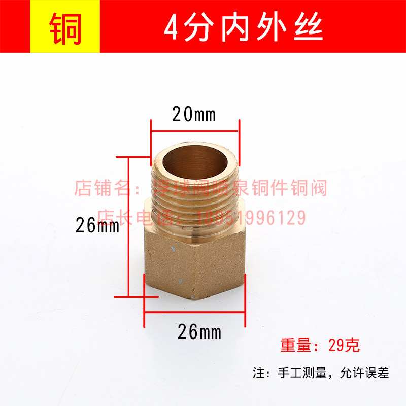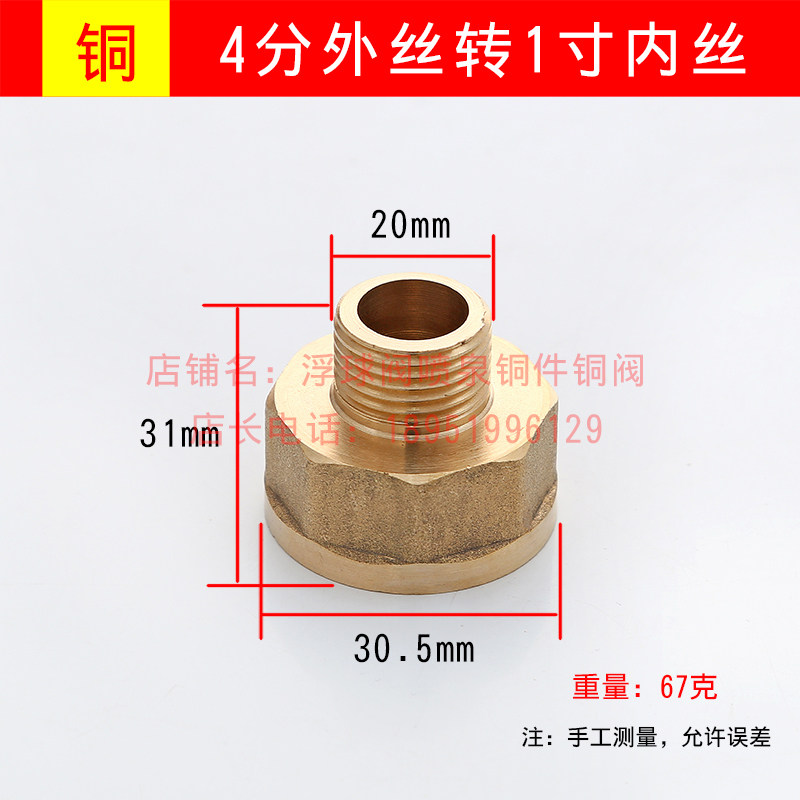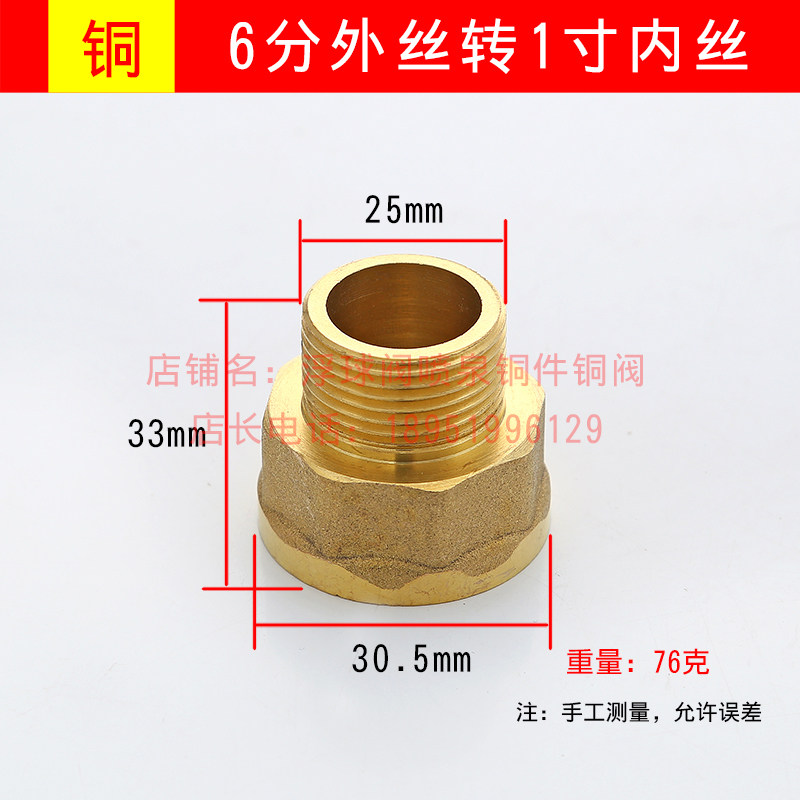 Полностью медный переходник, от 1 дюйма до 4 минут/от 6 минут до 4 минут, переходник-переходник для внутреннего/внешнего провода, утолщенный