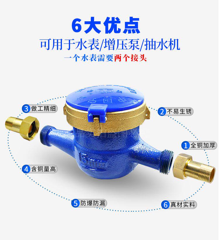 - Медный разъем измерителя воды 6 пунктов, кроме*1 дюйм, утолщен внутри