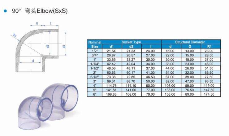 Тайвань прозрачная ПВХ водопроводная труба прозрачная труба приобретает аксессуары 90 градусов прозрачного локтя локтя