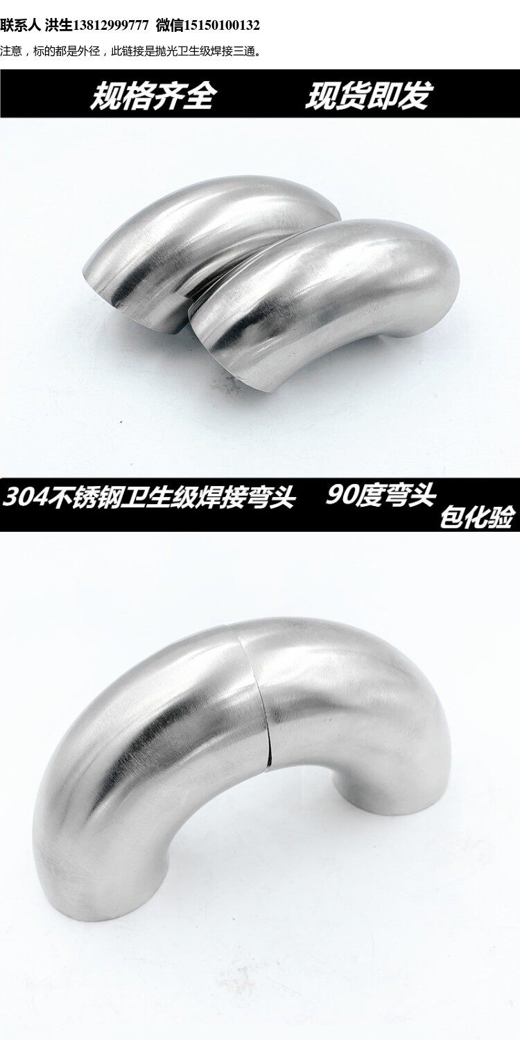 304 Гигиеническая полировка 90 градусов сварки из нержавеющей стали 316L Гигиеническая полировка 90 градусов 32 51 76 89