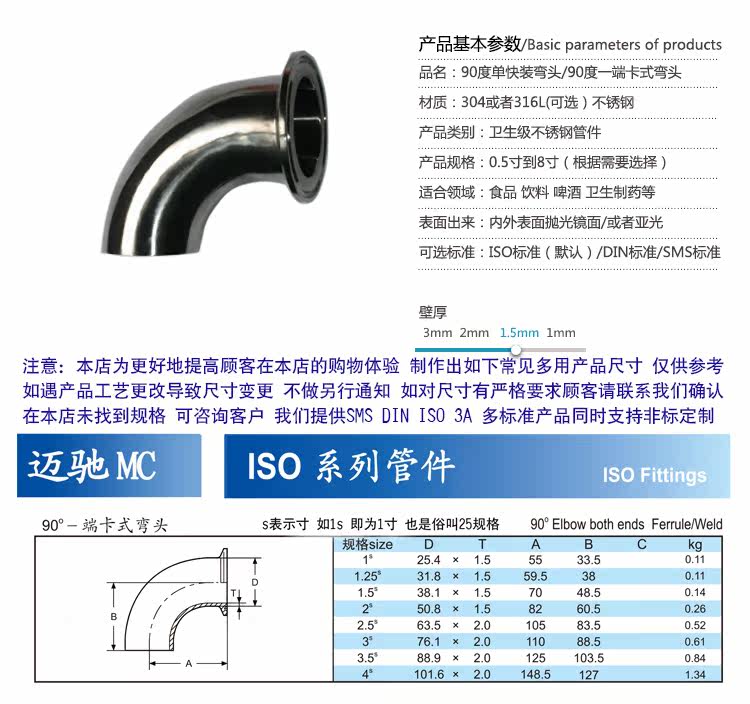 Гигиена быстро -загруженная локоть/нержавеющая сталь. Одиночная сварка локоть/304 Быстрая загрузка локоть/одно быстрое 90 -градусный разъем
