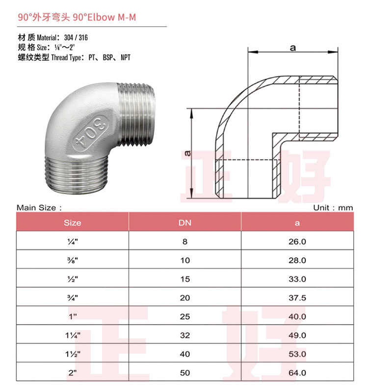 - 【304】 dn50 = 2 -inch bspt = rc = zg thread