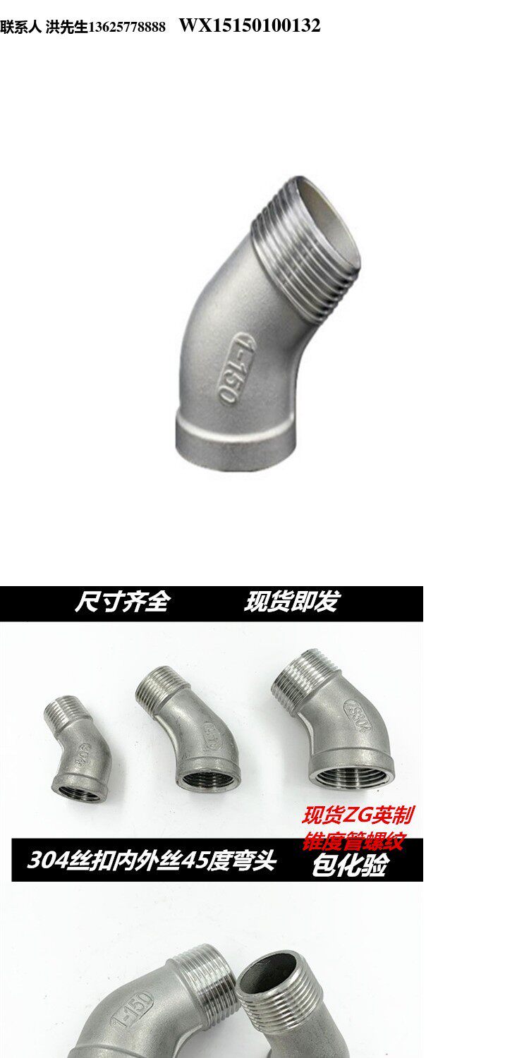 304 из нержавеющей стали 45 градусов внутри и снаружи шелкового локтя 4 минуты, 6 минут, 1 -дюймовый двойной проволока 45 градусов кольч