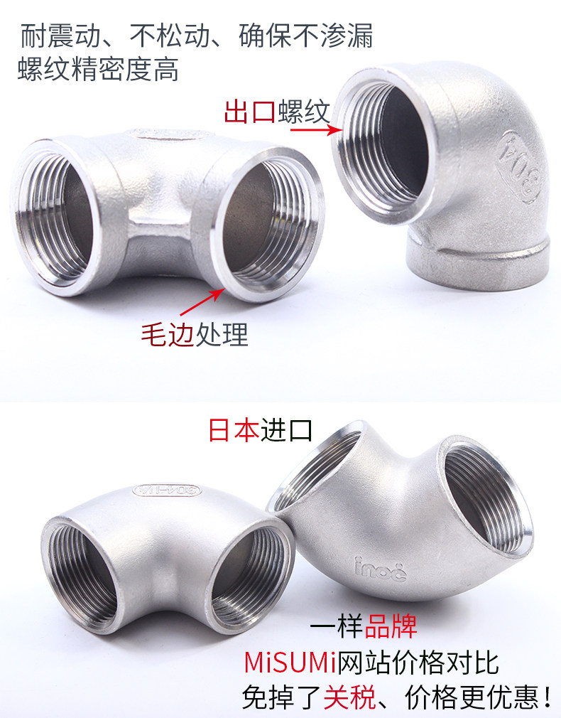 316/304 Кличок из нержавеющей стали 90 градусов NPT Стандарт 25 двойной проволочный локоть 2 точки от соединения водопровода 1 дюйм