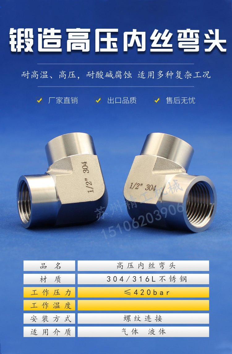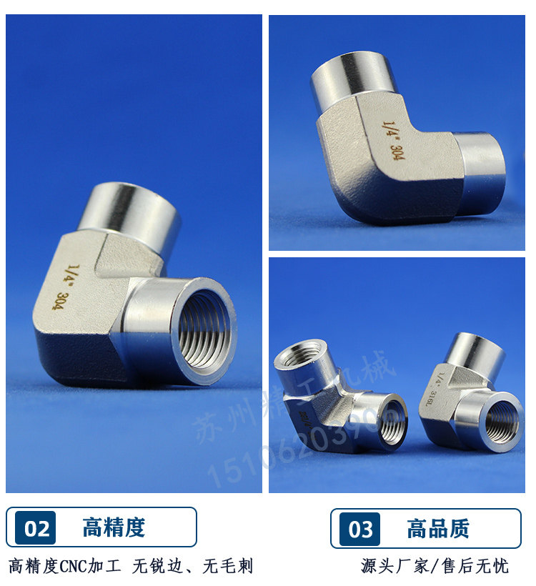 304/316L Высокий датчик из нержавеющей стали Внутренняя проволочная колена на 90 ° коды внутренний внутренний зубной угол с изгиб