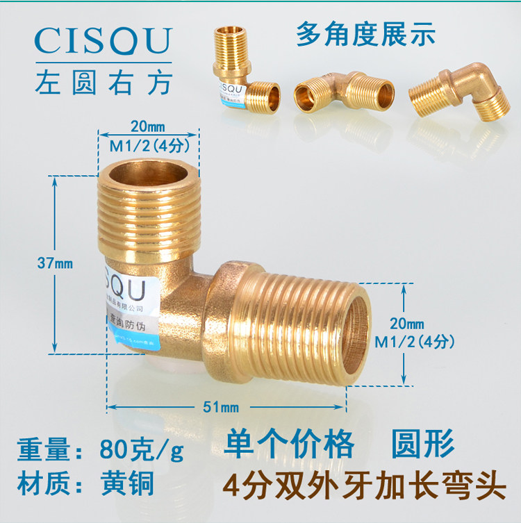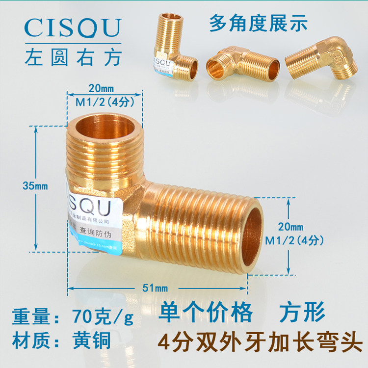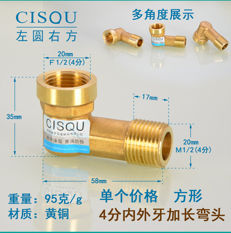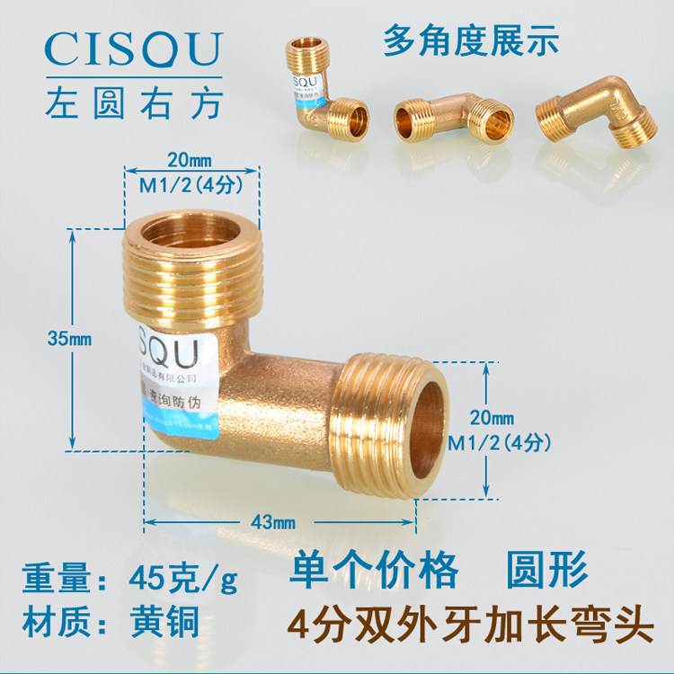 4-точечная удлиненная внутренняя и внешняя проволока, двойные внешние зубья, утолщенное медное колено, внутренний и внешний зубья DN15, удлинение на 90 градусов, дополнительное соединение