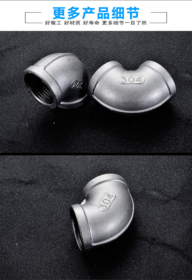 - 304 DN32 (1,2 дюйма) Внутренние зубы 90 градусов локоть