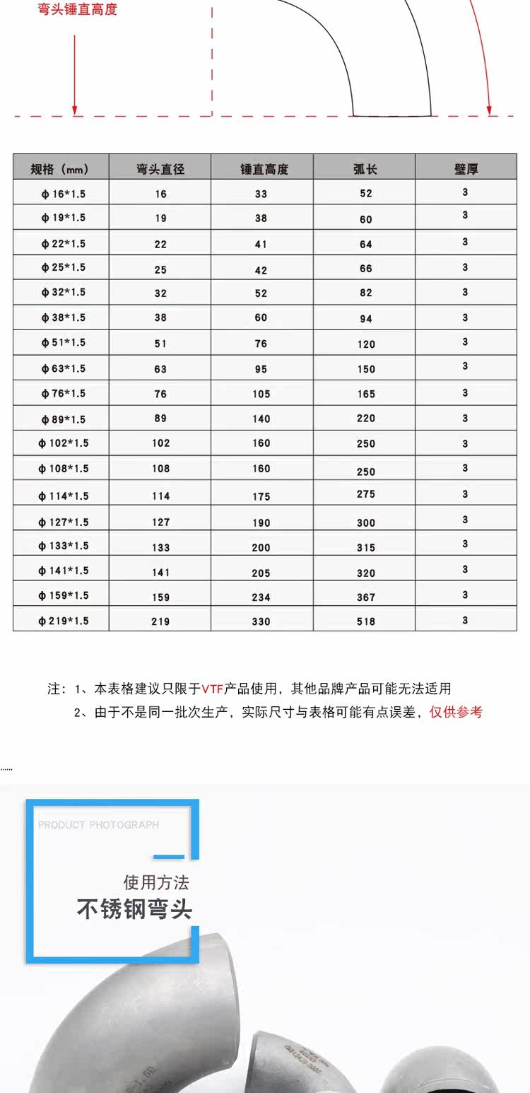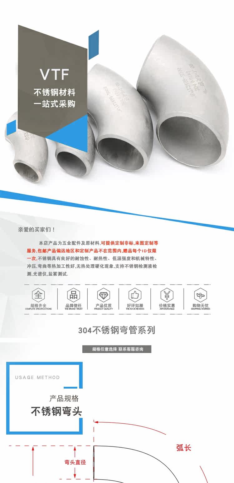VTF 304 Сварка из нержавеющей стали на 90 градусов Штанки сварки локоть R = 1,5D DN15 20 40 50 50 50 50 50 50 50