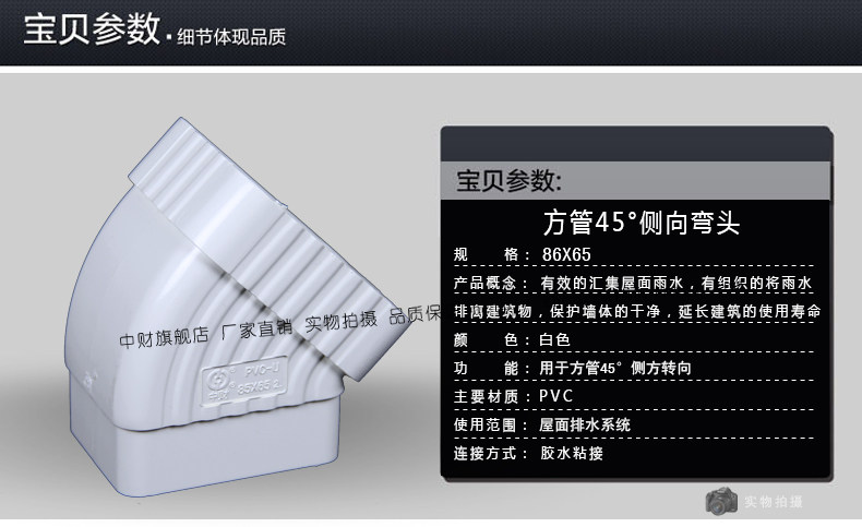中财 RCS крыша вилла дождевая вода сброс воды Система выброса труба трубная трубка 45 ° боковая локоть квадратная труба локоть