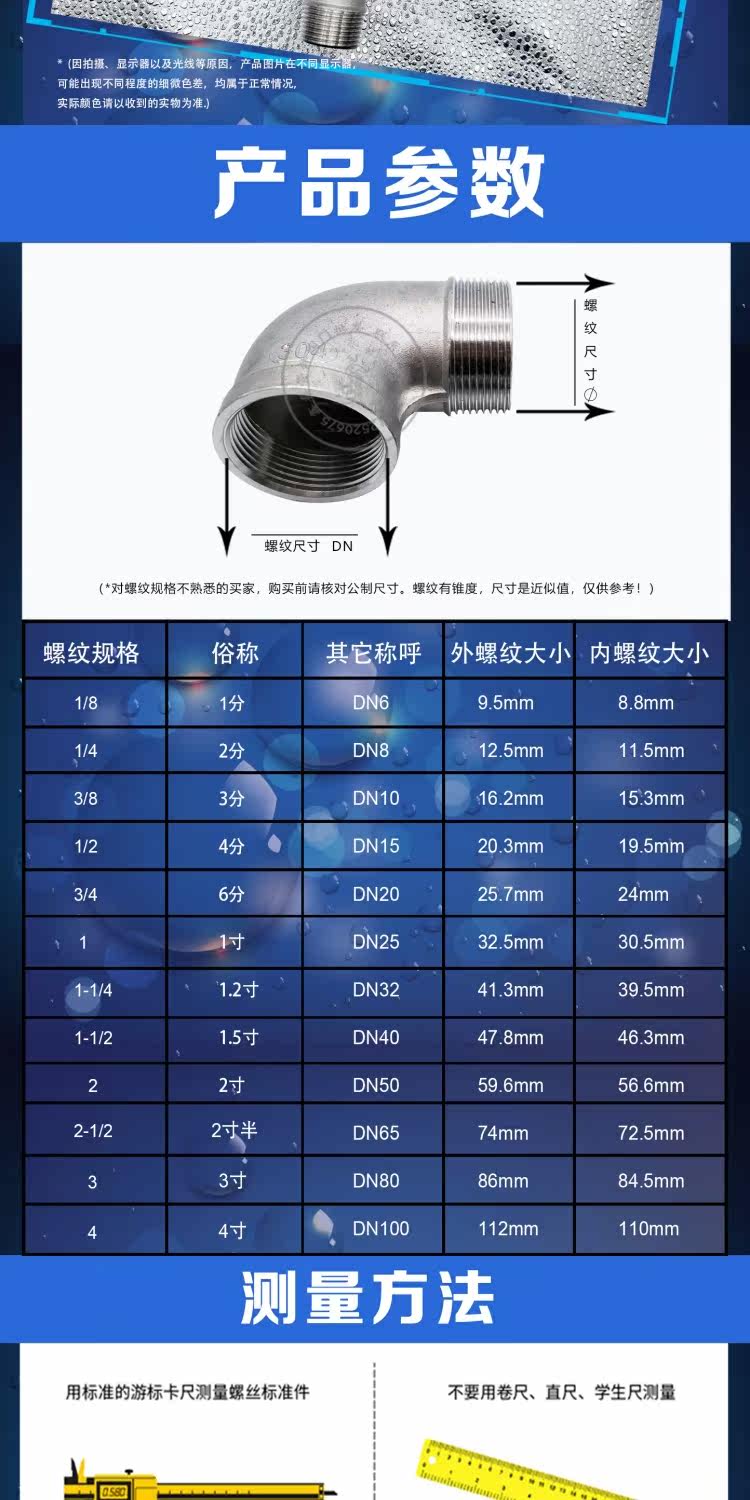 - 304 Внутренний и внешний шелковый локоть DN15 = 1/2 = 4 балла