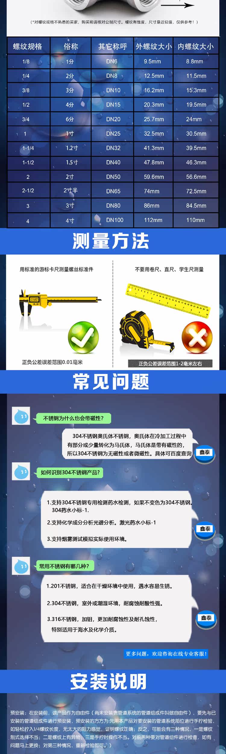 | Цвет: | 304 локоть 1 точка = dn6 = 1/8, 304 локоть 2 балла = dn8 = 1/4, 304 локоть 3 балла = dn10 = 3/8, 304 локоть 4 балла = DN15 = 1/2, 304 локоть 6 баллов = dn20 = 3/4, 304 локоть 1 дюйм = DN25, 304 локоть 1,2 дюйма = DN32 = 1-1/4, 304 локоть 1,5 дюйма = dn40 = 1-1/2, 304 локоть 2 дюйма = DN50, 304 локоть 2,5 дюйма = dn65 = 2-1/2, 304 локоть 3 дюйма = DN80, 304 локоть 4 дюйма = DN100 |