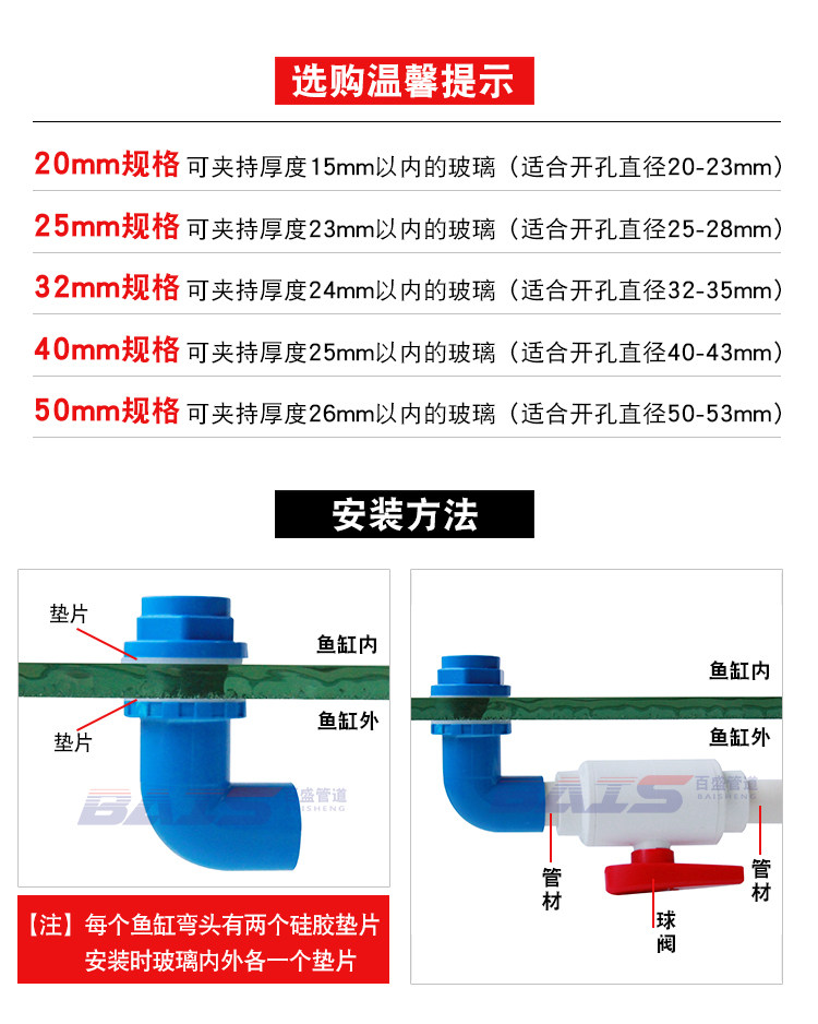 Рыбная бак Верхняя и нижняя труба с водопроводной трубкой ПВХ локоть на 90 градусах переполнения трубы и расширенный внутренний и внешний зубной проволочный бак.