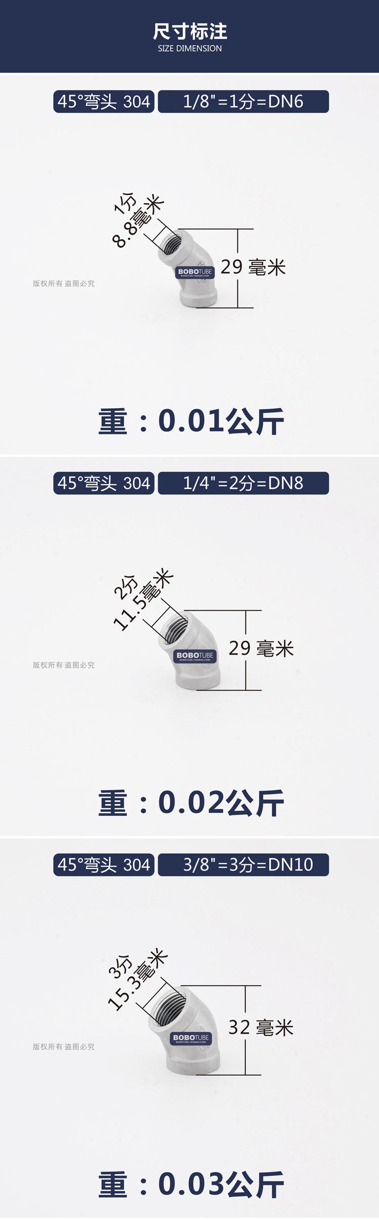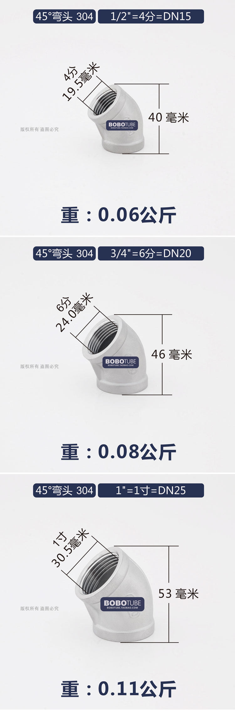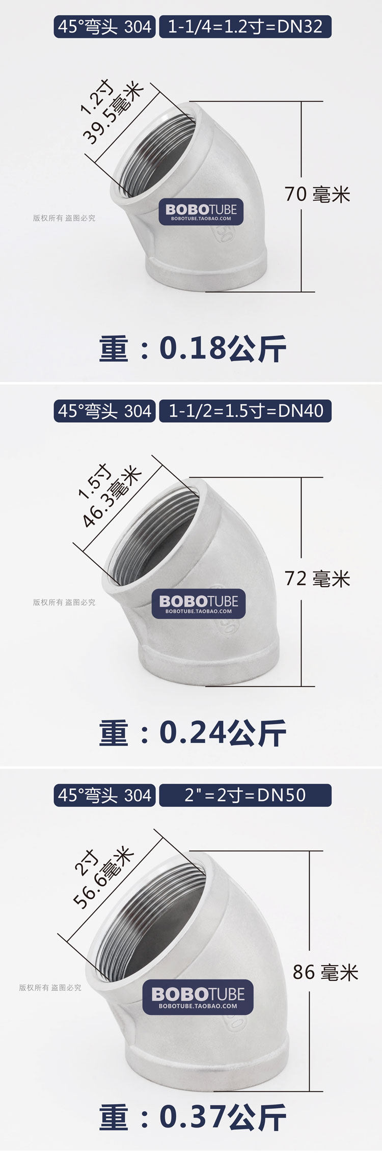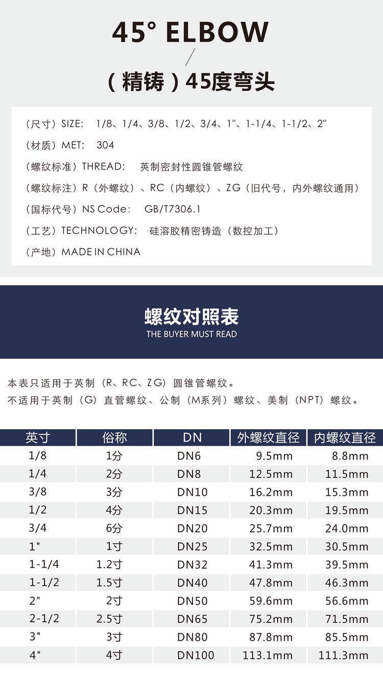 Положительный 304 из нержавеющей стали 45 градусов внутренней проволоки колена 45 ° Свек 12346 точек, 1 -дюймовый 1,2 дюйма 1,5 -раз.
