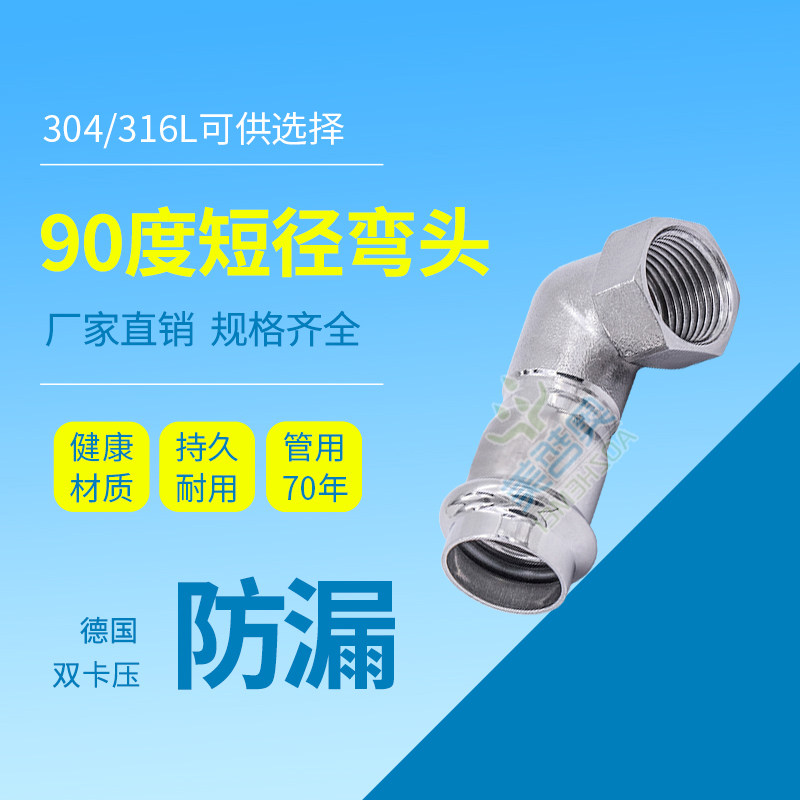 [304/316L不锈钢管件90度内牙短径弯头卡压家用薄壁自来水管连接件]