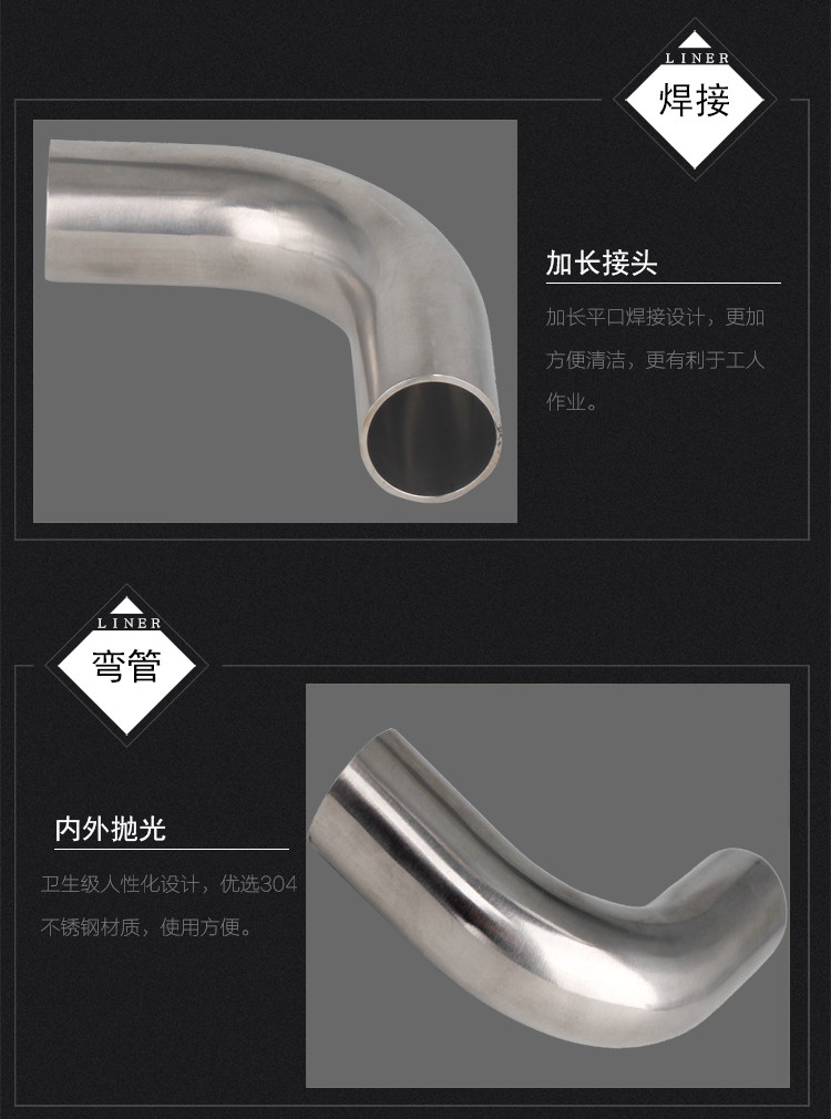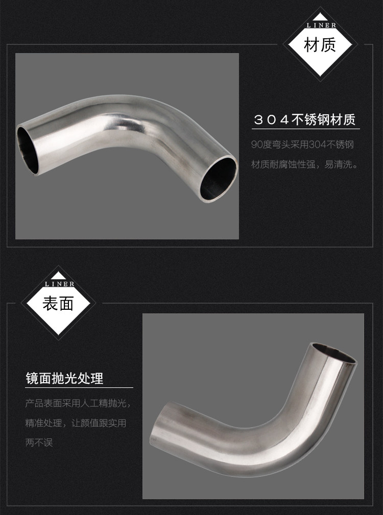 304 Сварка из нержавеющей стали на 90 градусов внутри и снаружи зеркала 316L Гигическая печать правого углового изгиба