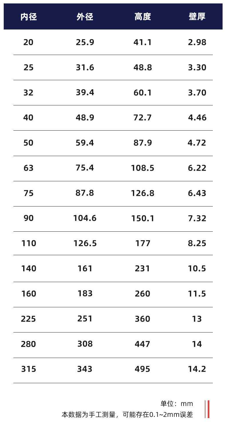 | Цвет: | 【Темно -серой】 внутренний диаметр 16 мм -3/8 ", 【Темно -серый】 внутренний диаметр 18 мм -3 баллов, [Deep Grey] внутренний диаметр 20 мм -1/2 "-4 баллы, [Темно -серый] внутренний диаметр 25 мм -3/4 "-6 баллов, [Темно -серый] внутренний диаметр 32 мм -1 "-1 дюйма, [Deep Grey] внутренний диаметр 40 мм -1-1/4 "-1,25 дюйма, [Deep Grey] внутренний диаметр 50 мм -1-1/2 "-1,5 дюйма, [Темно -серый] внутренний диаметр 63 мм -2 "-2 дюйма, [Deep Grey] внутренний диаметр 75 мм -2-1/2 "-2,5 дюйма, [Темно -серый] внутренний диаметр 90 мм -3 "-3 дюйма, [Deep Grey] внутренний диаметр 110 мм -4 "-4 дюйма, [Deep Grey] внутренний диаметр 140 мм -5 "-5 дюйма, [Темно -серый] внутренний диаметр 160 мм -6 "-6 дюйма, [Deep Grey] внутренний диаметр 315 мм -12 "-14 дюймов |