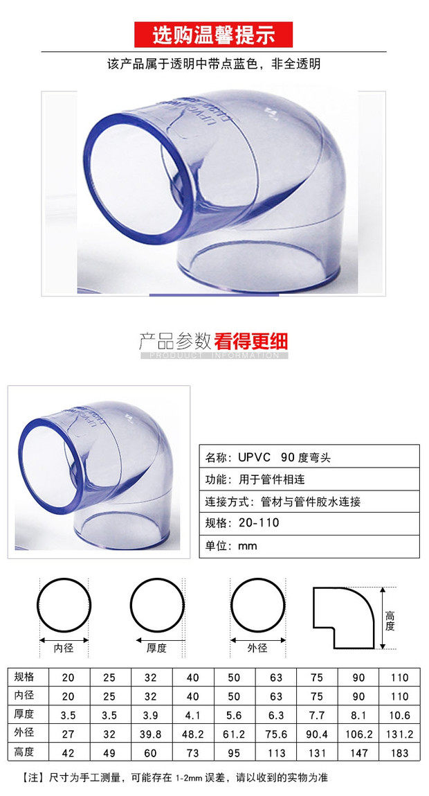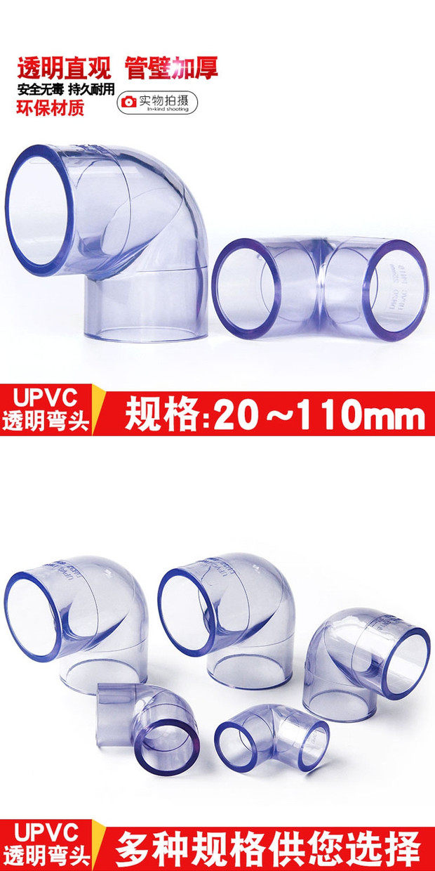 ПВХ прозрачные коленовые трубы Поставьте аксессуары для водопроводной трубы 90 градусов Пластиковый прозрачный