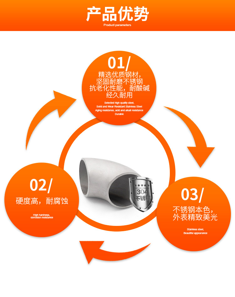304 нержавеющая сталь 90 градусов локоть 1D Колочный радиус Кольон Печалка бесшовные сварки промышленного сорта φ25-630