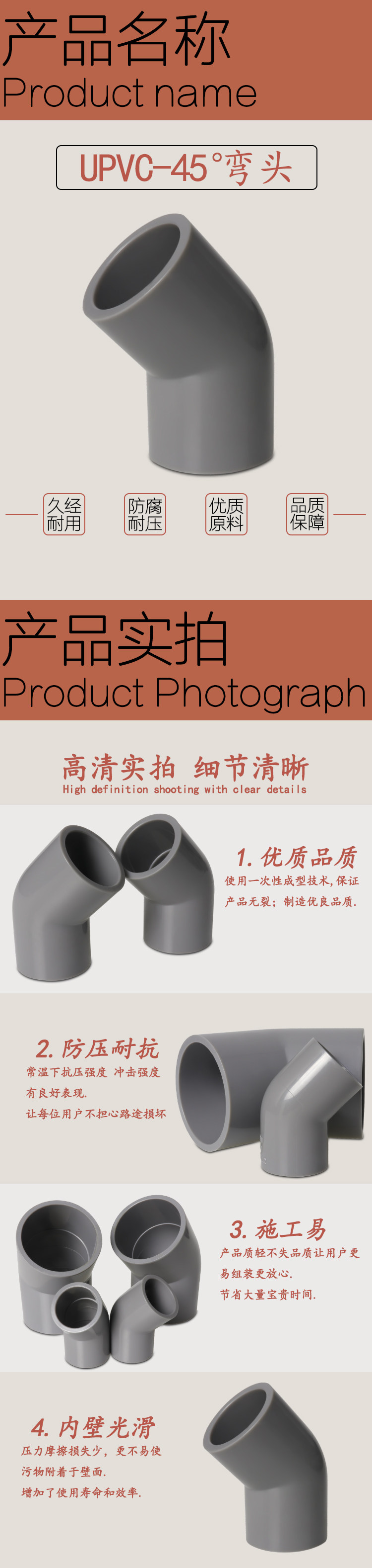 Серый UPVC45 градусов Колея химическое вещество, дающее воду PVC135 градусов локоть DN15 20 25 32 40 50 65