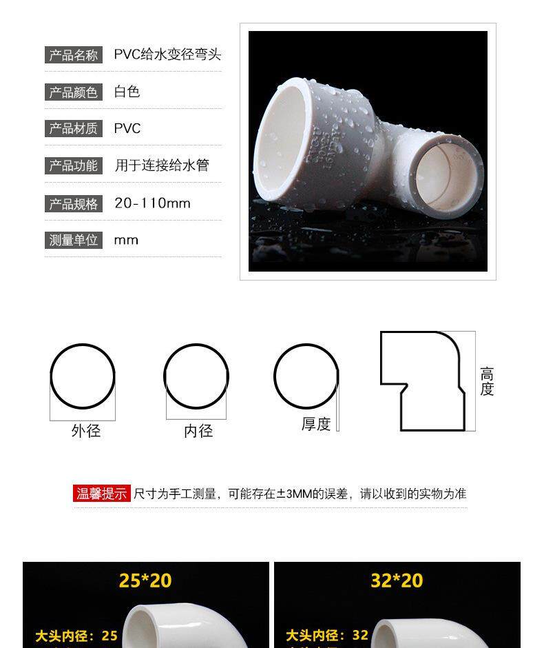 Соединение различных диаметров 75 езда 3290 об / мин от 32 до 20pvc