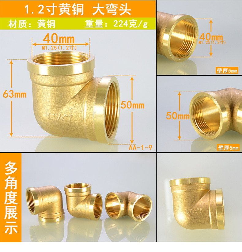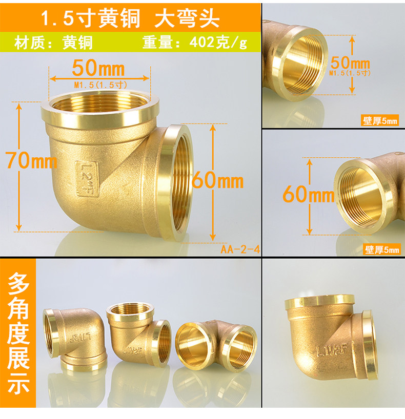 Медные аксессуары, 1.2 дюймов, 1.5 дюймов, 2 дюймов, 90 градусов, 1 дюймов