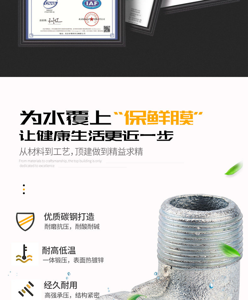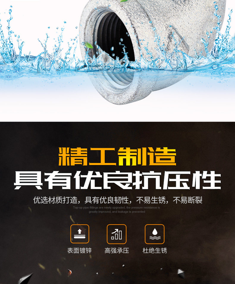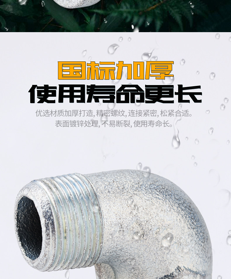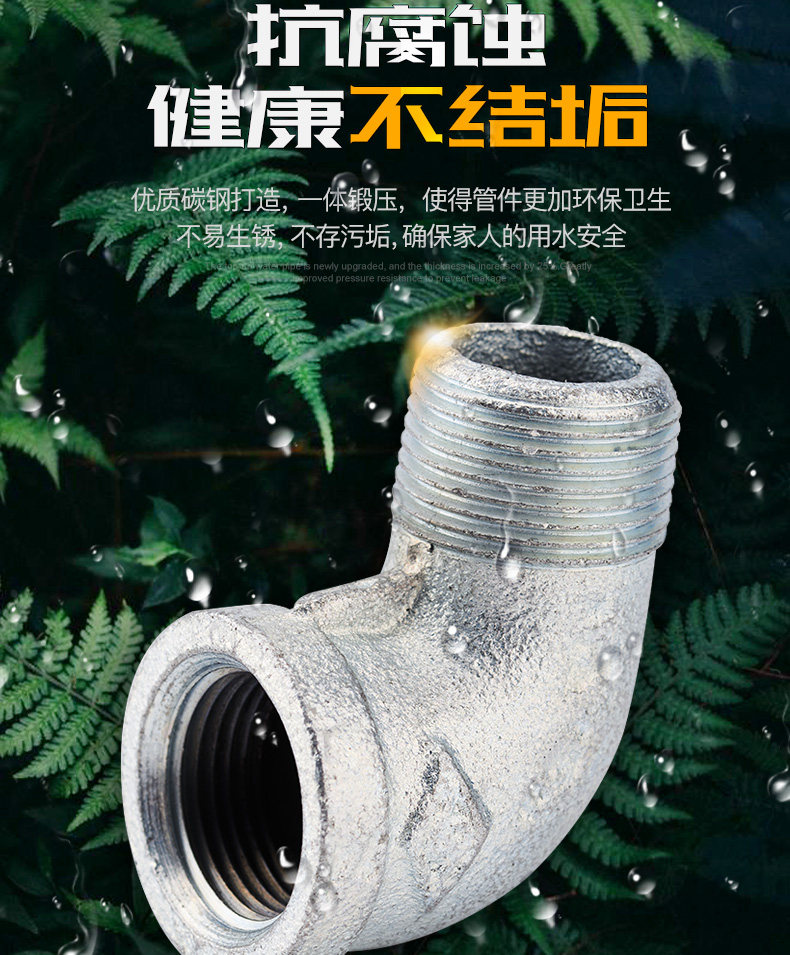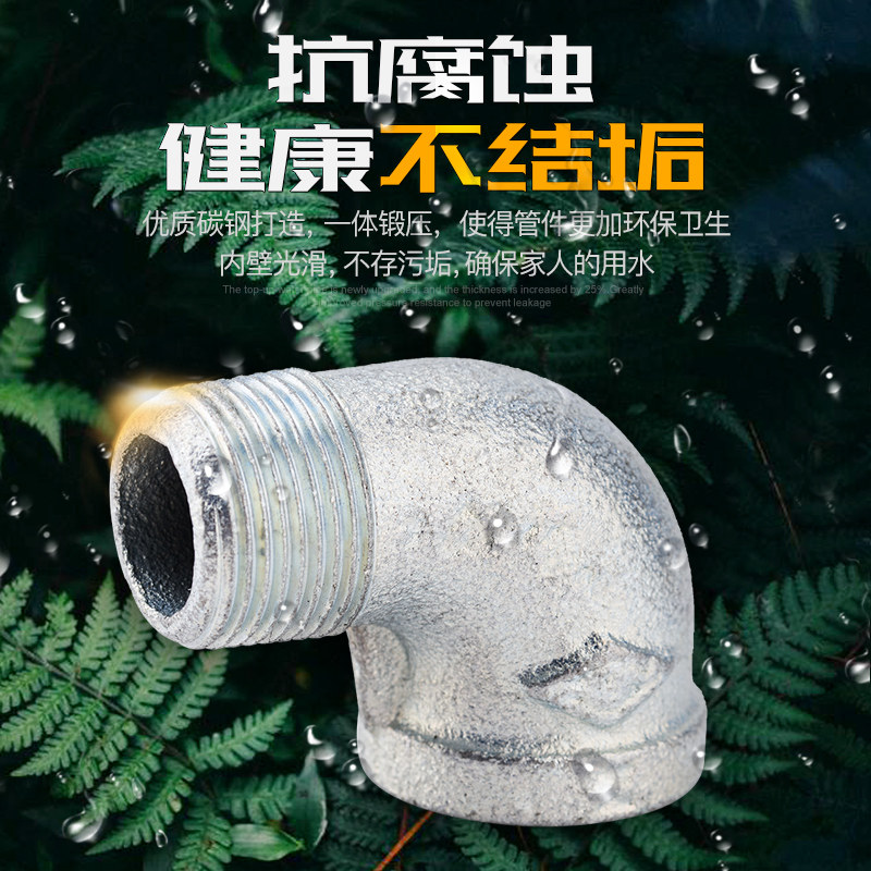 顶建 Оцинкованный внутренний и внешний проволочный, внутренний и внешний проволочный, внутренний и внешний зубной нить, 1 дюйм 6 точек, 4 балла, DN15 20253240 Железный локоть