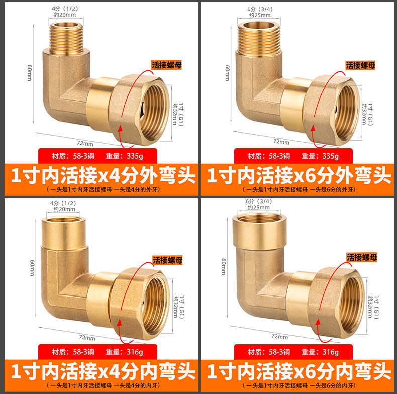 Весь диаметр переменной копты, локоть с различным диаметром, соединение с водопроводной трубкой 1 -инч 6/4 точки преобразования DN15/20/25 Внутренние и внешние аксессуары шелкового шелка Daquan