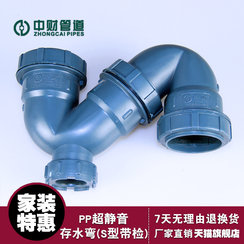 中财 Трубопровод PP Ultra -Silent Drain Lipes Stocking (S -тип контроль лента) S -Curved Land Spection Water Semed S -Curved